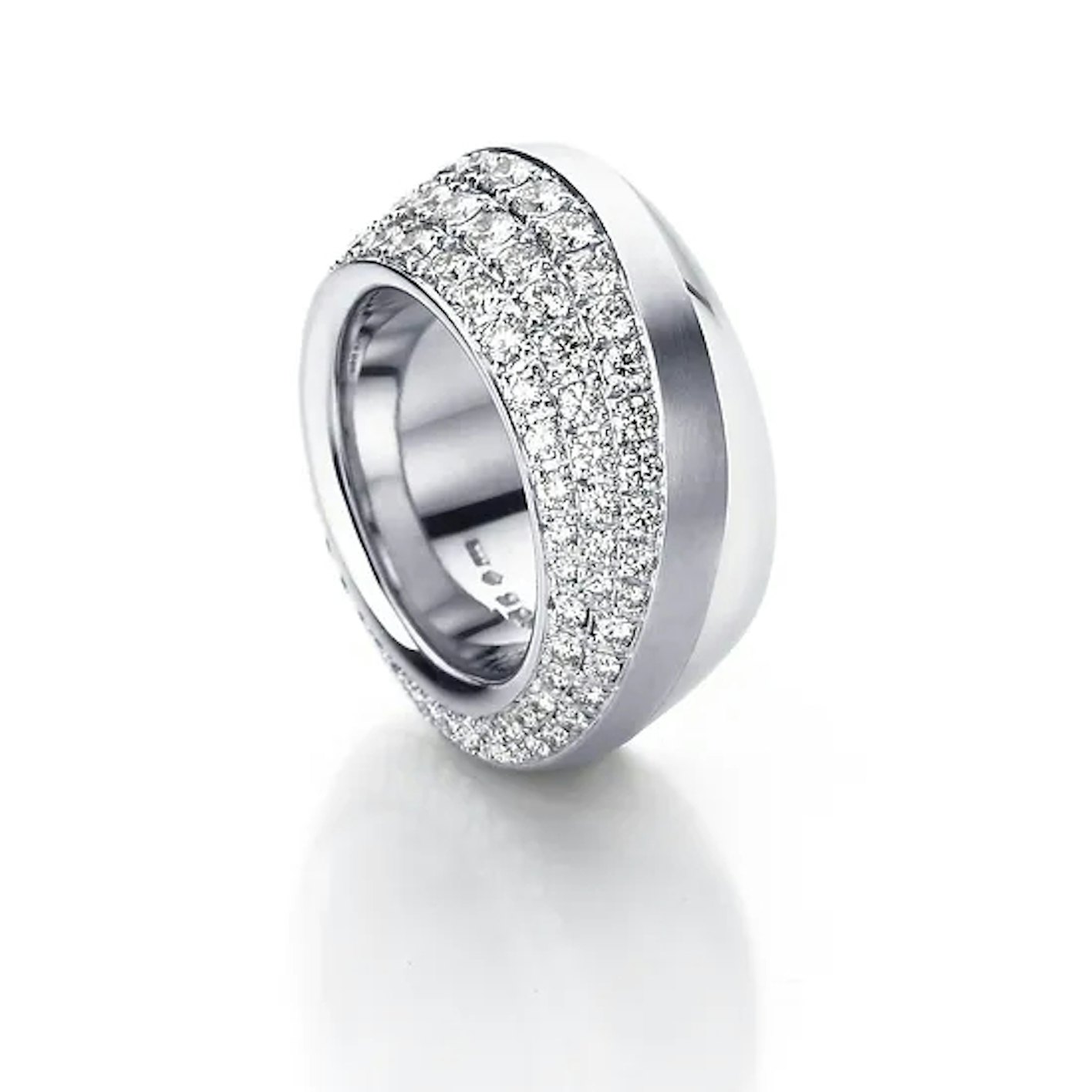 Ein Statement von absoluter Modernität. In einem asymmetrischen und glamourösen Design von höchstem Tragekomfort verbindet Cloé verschwenderischen Materialpurismus mit der großartigen Wirkung von Diamantbesätzen.
