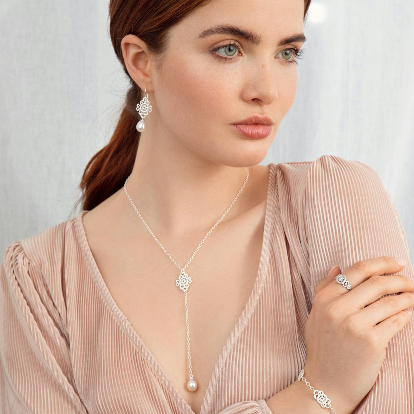Hergestellt in Deutschland, mit einer großen Liebe zur Tradition und einem Fokus auf Nachhaltigkeit - entdecken Sie feinen Spitzenschmuck von Brigitte Adolph, verziert mit Perlen, Bergkristallen oder Mondsteinen umhüllt von filigranem Silberschmuck. Feminines und modernes Design kombiniert mit längst vergessenen Spitzenmustern machen die Schmuckstücke perfekt als Brautschmuck für den großen Tag. Man sollte sich jedoch nicht täuschen lassen, denn sie eignen sich auch für den Alltag mit ihrer schlichten Linienführung und zarten Eleganz.