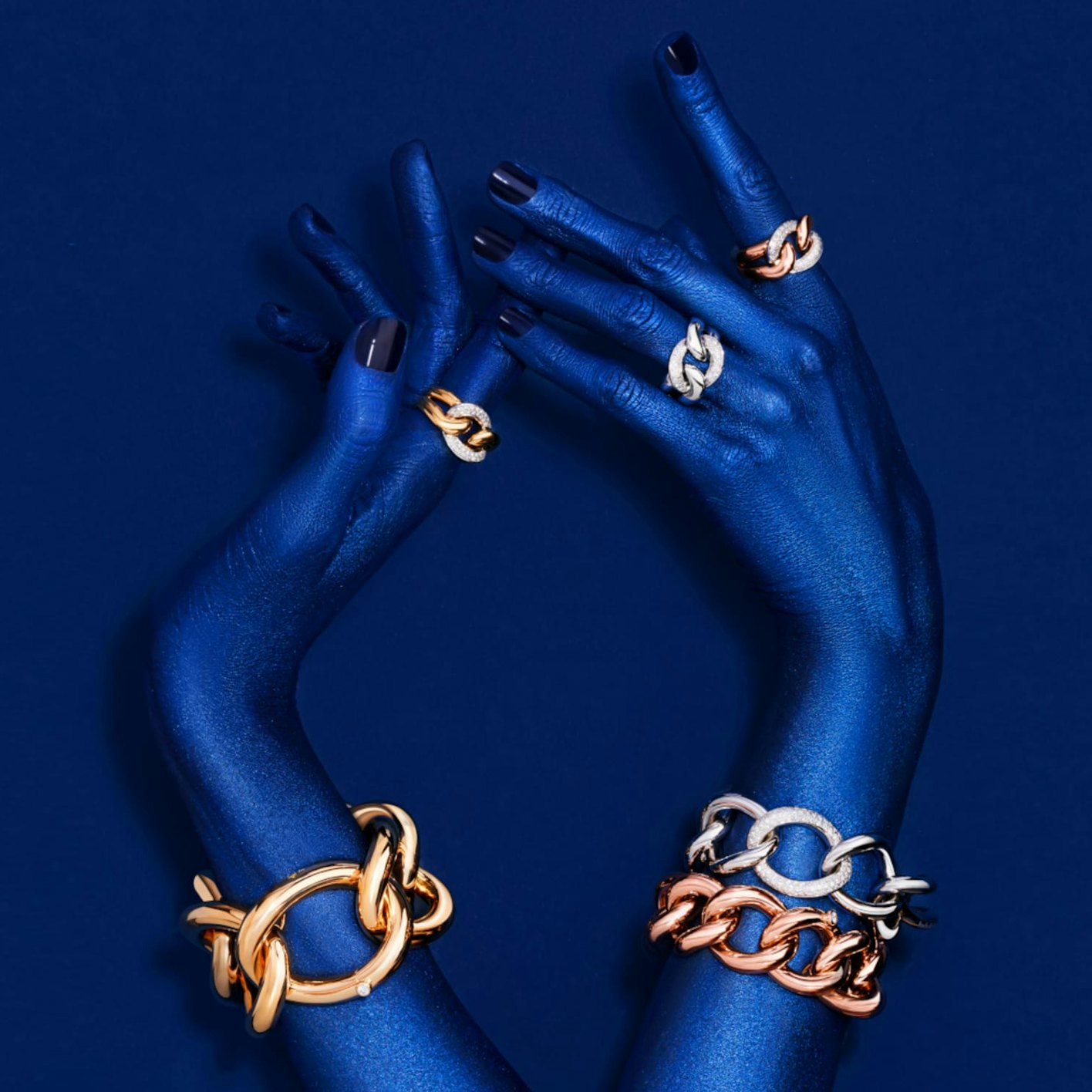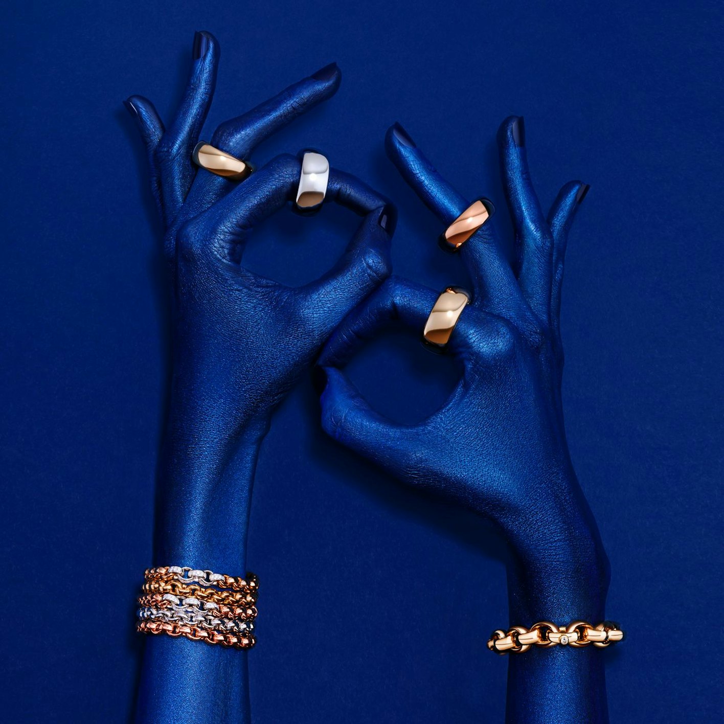 Da sich die traditionellen Fertigungsmethoden insbesondere für die Herstellung voluminöser Schmuckstücke bewährten, entwickelten Isabelle und Hans-Georg Mössner neue Kollektionen, die sich auf große, hochglanzpolierte und mattierte Oberflächen aus Gold und Platin konzentrieren. Der Fokus liegt dabei allein auf der Ausdruckskraft des geschmiedeten Edelmetalls. Dank der klassischen Techniken entstehen makellose Oberflächen auch im großen Format. Eine Qualität, die maschinelle Produktionsverfahren nicht erreichen. Darüber hinaus macht die handwerkliche Fertigung die Kreation von Fantasie-Ketten möglich. Dabei werden Kettenelemente unterschiedlicher Größen und Designs kombiniert