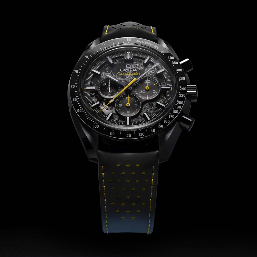 Alle Ausführungen werden von OMEGAs legendären Co-Axial-Kalibern angetrieben, die durch den transparenten Gehäuseboden aus Saphirglas sichtbar sind. Die „Dark Side of the Moon“-Kollektion bietet Armbanduhren mit Vintage-Designelementen der Speedmaster, dekorierten Uhrwerken und einer beeindruckenden Historie für eine eigene Generation von Abenteurern.