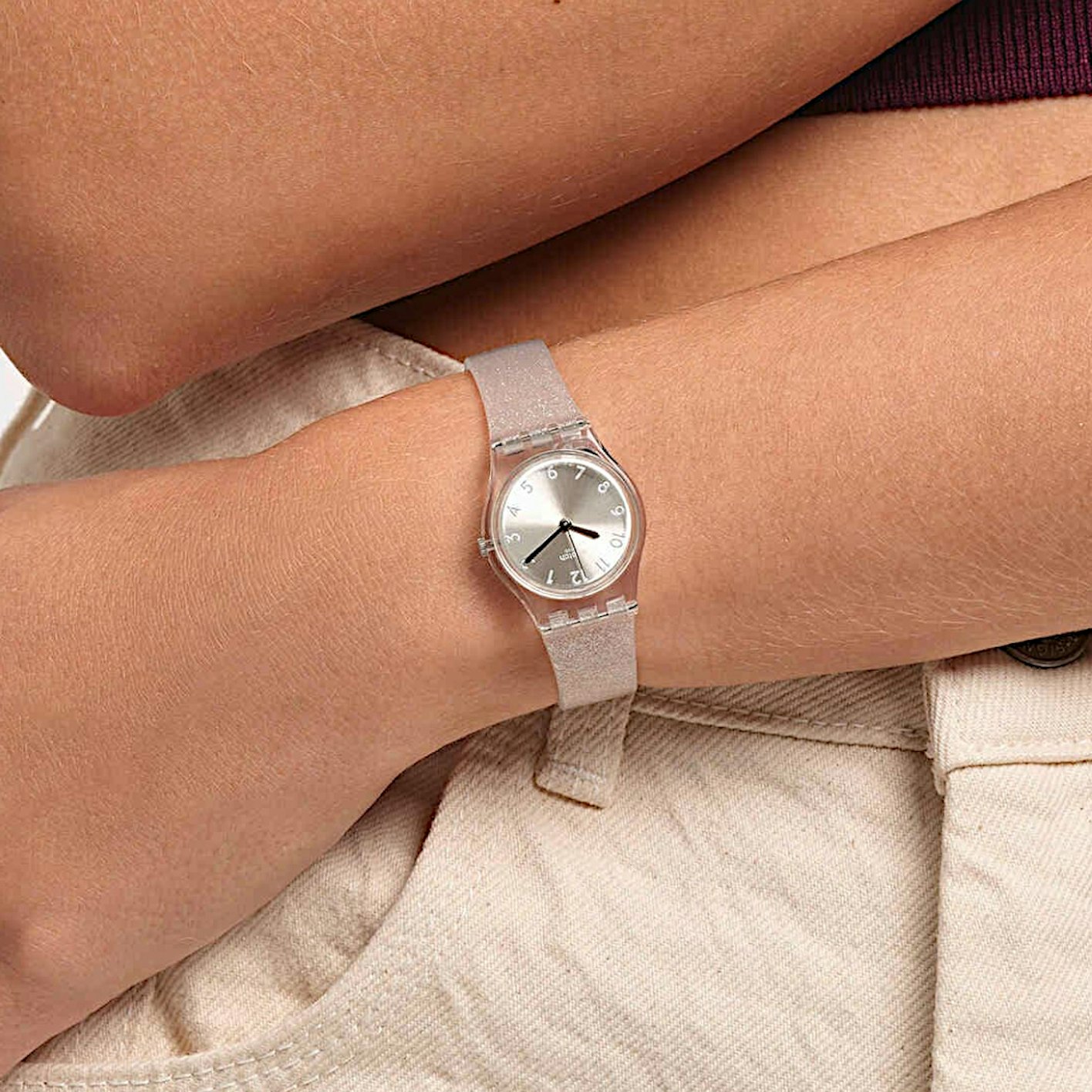 Egal ob schlicht und elegant oder verrückt und farbenfroh - Die Modelle der Swatch Lady passen nicht nur zum Geschmack der Trägerin sondern auch zu Ihrem individuellen Charakter. Das Gehäuse der Swatch Lady hat einen Durchmesser von 25 Millimetern, ist stoßfest, wasserresistent bis zu einem Druck von 3 bar und mit einem Schweizer Präzisions-Quarzwerk ausgestattet.