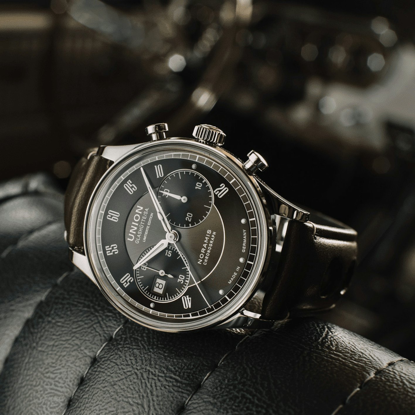 Die Kollektion Noramis von Union Glashütte verbindet eine klassische Eleganz aus den 50er und 60er Jahren mit den zeitgemäßen Ansprüchen an Uhrendesign und Technik. Das Herz von Uhrenfreunden wird bei der fein veredelten Mechanik und vielfältigen Komplikationen höher schlagen. Der besondere Charme und Charakter wird durch raffinierte Details wie bombiertes Glas und gewölbte Zifferblätter zusätzlich unterstützt und sorgt für dezente Lichtreflexe.
