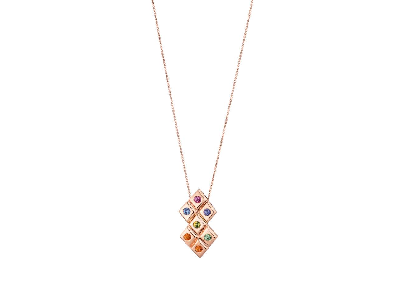 A. Odenwald Catwalk Kette mit Anhänger Roségold mit verschiedenfarbigen Saphiren