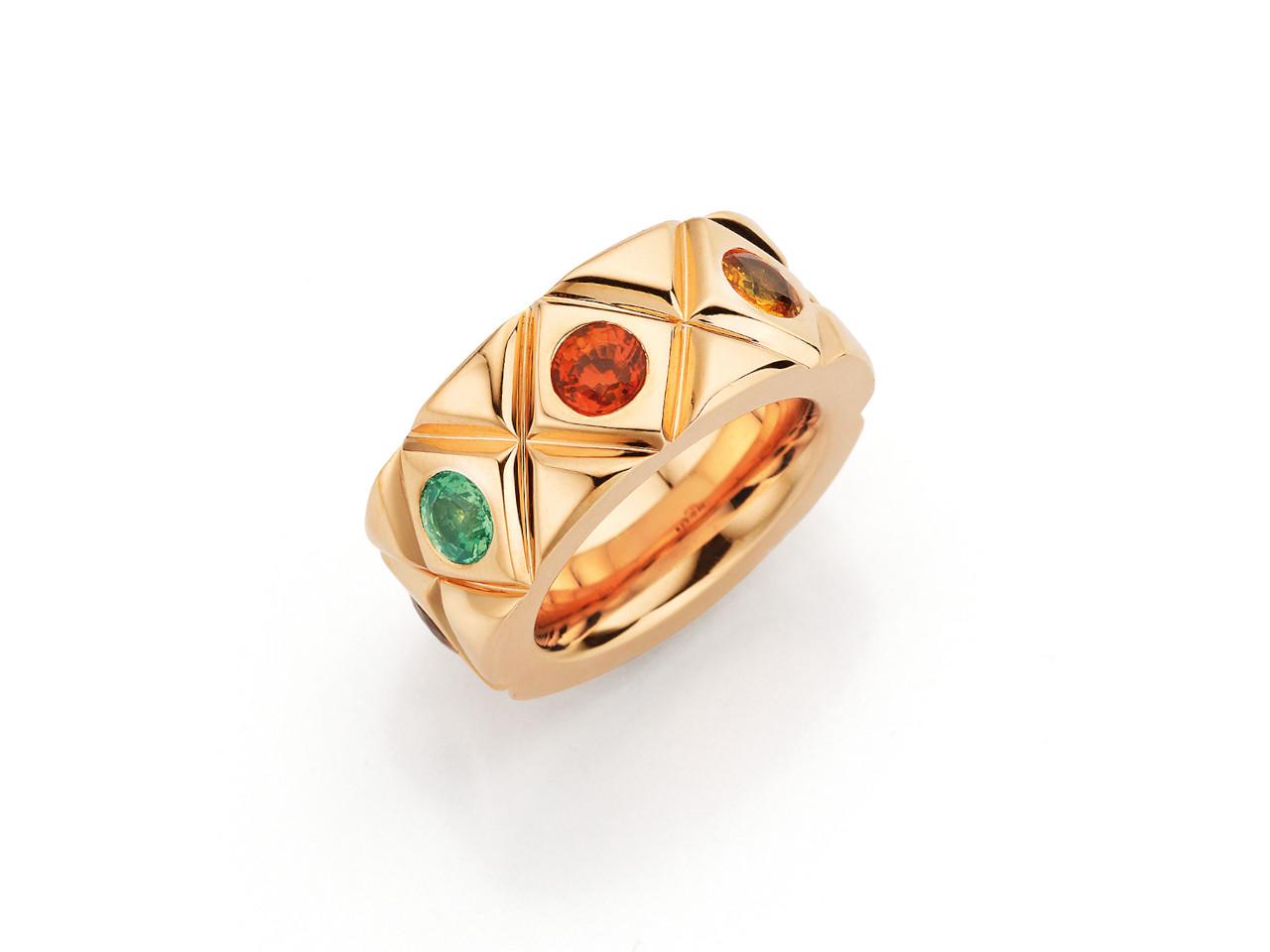 A. Odenwald Catwalk Ring Rotgold mit verschiedenfarbigen Saphiren