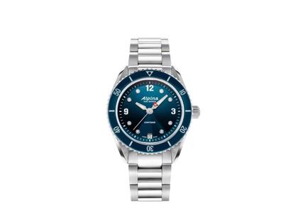 Alpina Alpiner Comtesse Quarz Edelstahl 36,5mm blaues Zifferblatt Metallband