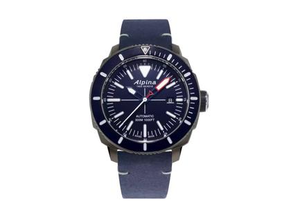 Alpina Seastrong Diver 300 Automatik Edelstahl 44mm blaues Zifferblatt blaues Lederband