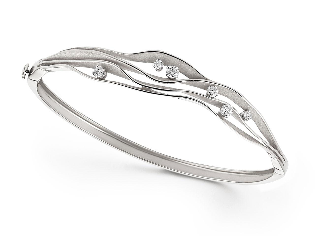 Armreif 750/- Weißgold (White Ice), poliert und satiniert, 6 Brillanten zusammen 0,37 ct TW vsi