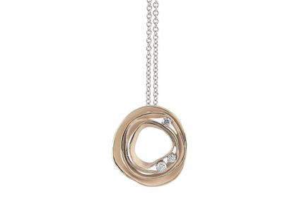 Kette mit Anhänger 750/- Beigegold (Natural), poliert und satiniert, 3 Brillanten zusammen 0,17 ct TW vsi, Ankerkette 42 cm mit Karabiner