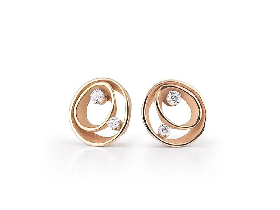 Ohrstecker 750/- Gold (Orange), poliert und satiniert, 4 Brillanten zusammen 0,17 ct TW vsi