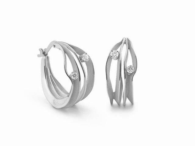 Creolen 750/- Weißgold, poliert und satiniert, 4 Brillanten 0,22 ct. TW vsi