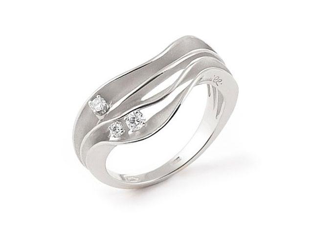 Ring geschwungen in 750/- Weißgold, 3 Brillanten 0,12 ct TW vsi