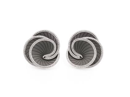 Ohrschmuck aus 750/- Weißgold in der Cammilli Farbe Black Lava, satiniert, mit Brillant-Kranz, 0,58 ct TW vsi, Steg poliert, mit Ohrmutter