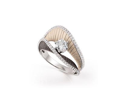Ring 750/- Gold in Natural Beige und Black Lava Gold mit Brillanten 0,70 ct TW vsi