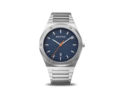Bering Classic Quarz Edelstahl 42mm blaues Zifferblatt Metallband