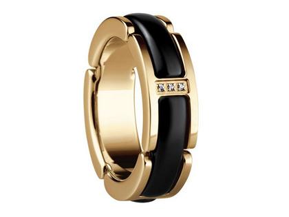 Bering Link Damenring Edelstahl IP gelb Keramik schwarz Zirkonia