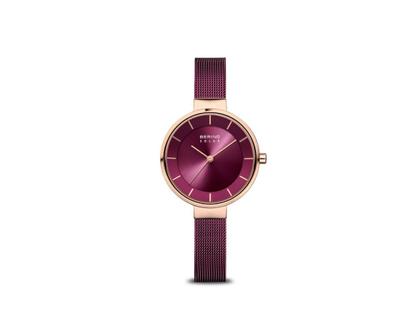 Bering Solar Edelstahl 31mm bordeauxfarbenes Zifferblatt Metallband