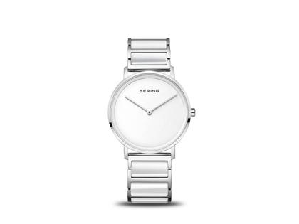 Bering Ceramic Edelstahl 35mm weißes Zifferblatt weißes Edelstahl-Keramikband