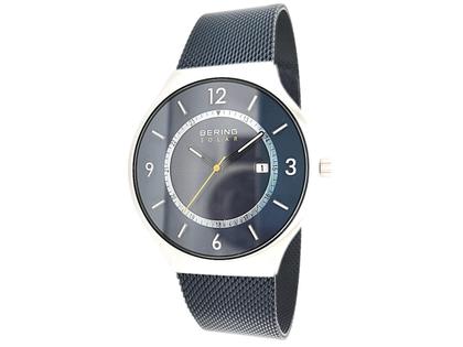 Bering Solar Edelstahl 40mm blaues Zifferblatt blaues Metallband