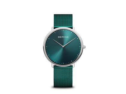 Bering Ultra Slim Quarz Edelstahl 39mm grünes Zifferblatt grünes Metallband
