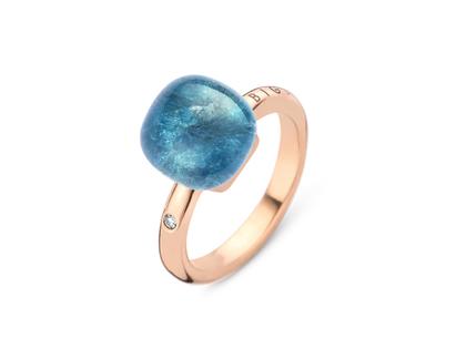 Ring "Atlantic Waves" aus 750/-Roségold, Cabochon-Größe M (10 x 10 mm), blauer Apatit und Bergkristall (Dublette), 1 Brillant 0,02 ct TW(G) vs gefasst in der Ringschiene