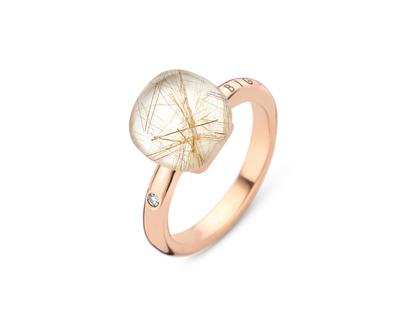 Bigli Mini Sweety "Quartz Rutile Moonshine" Ring Roségold Gr. M mit Brillant 0,020ct