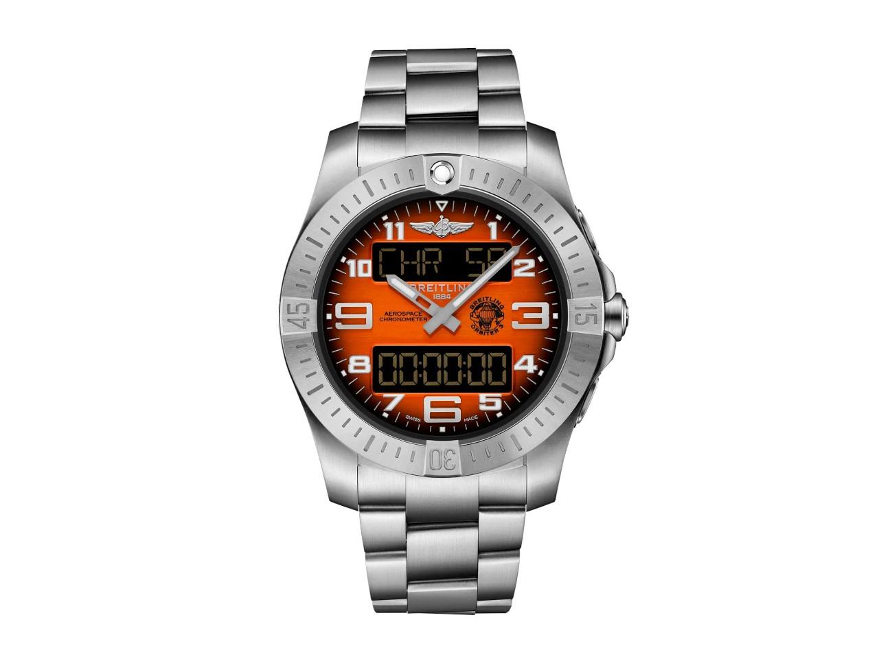 Breitling Aerospace B70 Orbiter Quarz Titan 43mm orangenes Zifferblatt Metallband
