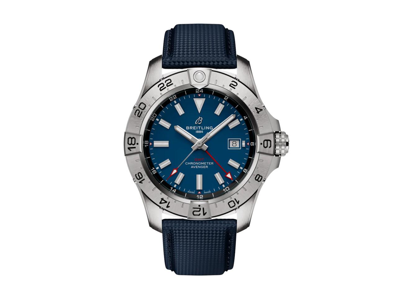 Breitling Avenger GMT 44 Automatik Edelstahl blaues Zifferblatt dunkelblaues Lederband