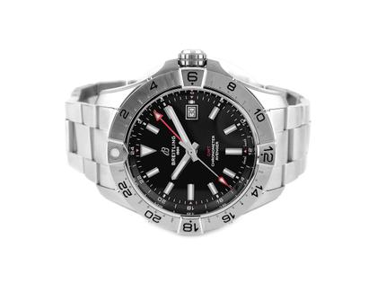 Breitling Avenger GMT 44 Automatik Edelstahl schwarzes Zifferblatt Metallband Vorführmodell
