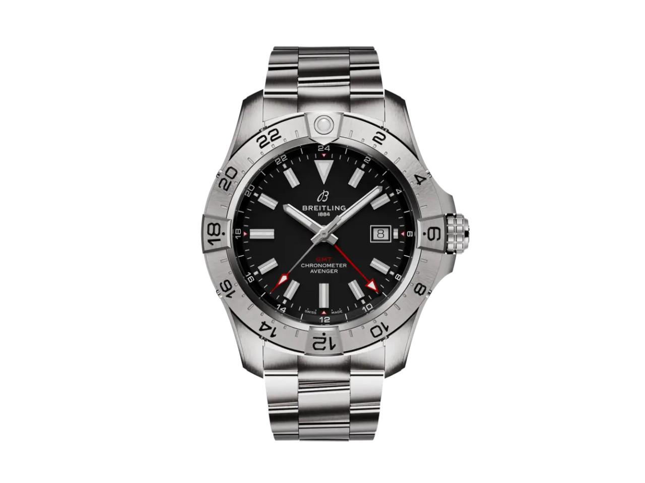 Breitling Avenger GMT 44 Automatik Edelstahl schwarzes Zifferblatt Metallband