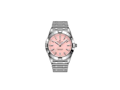 Breitling Chronomat 32 Quarz Edelstahl rosafarbenes Zifferblatt mit Brillanten Metallband