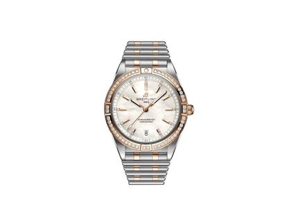 Breitling Chronomat Automatic 36 Edelstahl weißes Zifferblatt mit Brillanten zweifarbiges Metallband