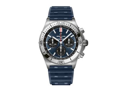 Breitling Chronomat B01 42 Automatik Edelstahl blaues Zifferblatt blaues Kautschukband