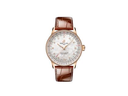 Breitling Navitimer Automatic 36 Edelstahl weißes Perlmutt-Zifferblatt braunes Lederband