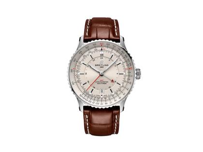 Breitling Navitimer Automatic GMT 41 Chronometer Edelstahl cremefarbenes Zifferblatt braunes Lederband