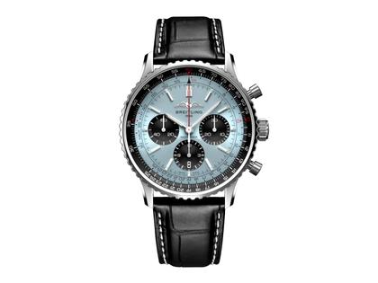 Breitling Navitimer B01 Chronograph 43 Edelstahl eisblaues Zifferblatt schwarzes Lederband