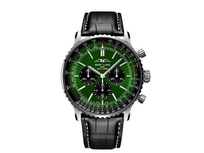 Breitling Navitimer B01 Chronograph 46 Edelstahl grünes Zifferblatt schwarzes Lederband