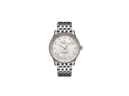 Breitling Navitimer 32 Quarz Edelstahl weißes Perlmutt-Zifferblatt Metallband