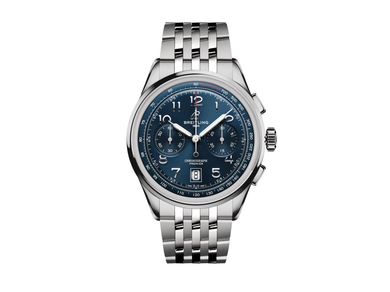 Breitling Premier B01 Chronograph 42 Automatik Edelstahl blaues Zifferblatt Metallband