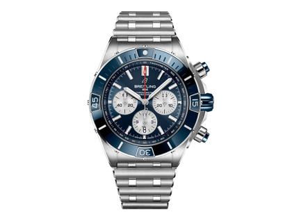 Breitling Super Chronomat B01 44 Automatik Edelstahl blaues Zifferblatt Metallband