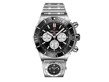 Breitling Super Chronomat B01 44 Automatik Edelstahl schwarzes Zifferblatt Metallband mit GMT Modul