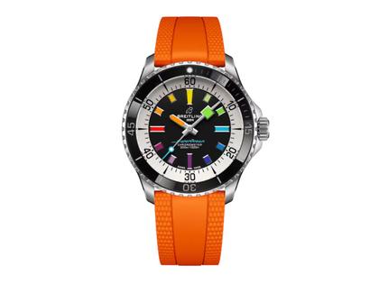 Breitling Superocean Automatic 42 Rainbow Edelstahl schwarzes Zifferblatt oranges Kautschukband