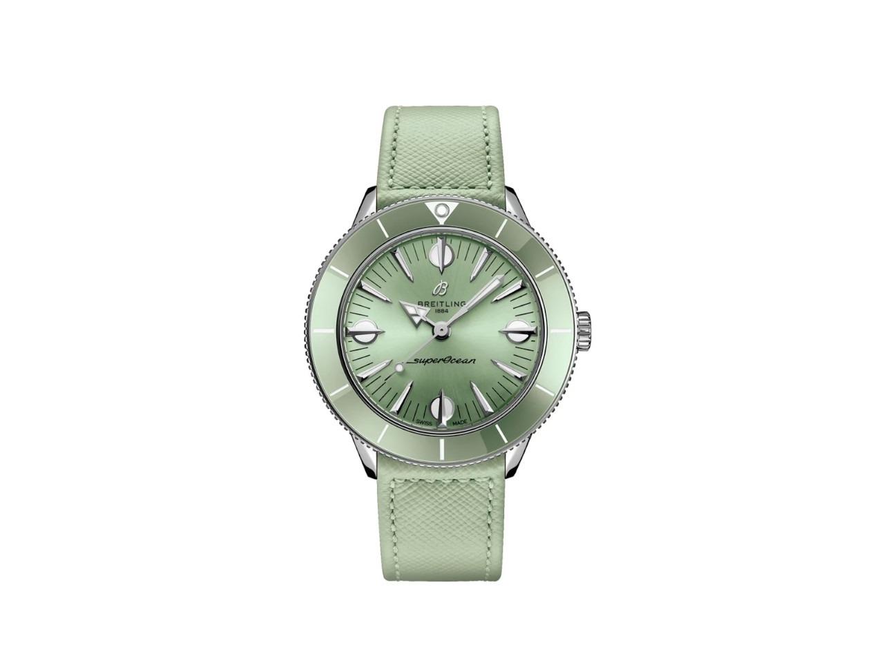 Breitling Superocean Heritage 57 Pastel Paradise Automatik Edelstahl 38mm grünes Zifferblatt grünes Lederband