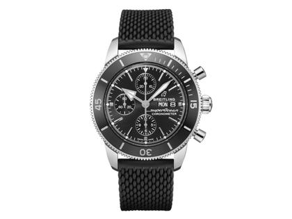 Breitling Superocean Heritage Chronograph 44 Automatik Edelstahl schwarzes Zifferblatt schwarzes Kautschukband