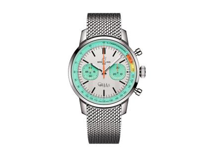 Breitling Top Time B01 Fausto Coppi Chronograph Automatik Edelstahl 41mm türkises Zifferblatt Metallband limitiert