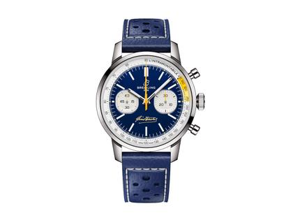 Breitling Top Time B01 Gino Bartali Chronograph Automatik Edelstahl 41mm blaues Zifferblatt blaues Lederband limitiert