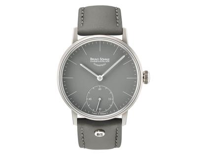 Bruno Söhnle Glashütte Stuttgart Handaufzug Edelstahl grau Lederband