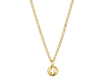 Kette aus poliertem Edelstahl gelbgoldfarben PVD beschichtet, mit offen gehaltenem Kugel-Anhänger, Ankerkette mit Karabinerverschluss, 45 cm lang