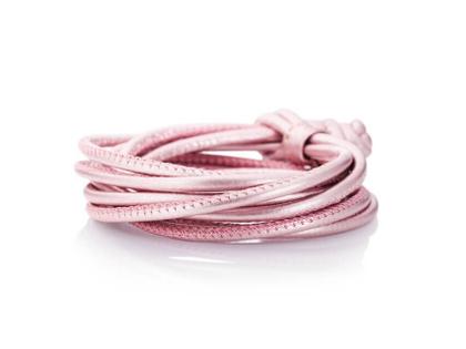 rosafarbenes Kalbslederarmband vierreihig, 42 cm lang, Lederband 3 mm breit