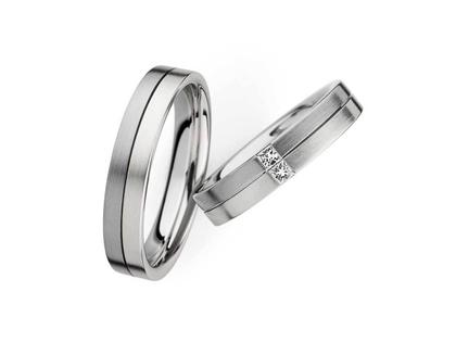 Trauringe aus 950/- Platin und 750/- Weißgold, seidenmatt, 4,5 mm breit, innen bombiert und poliert