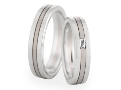 Christian Bauer Trauringe Platin mit Weißgold und Baquette Diamant
